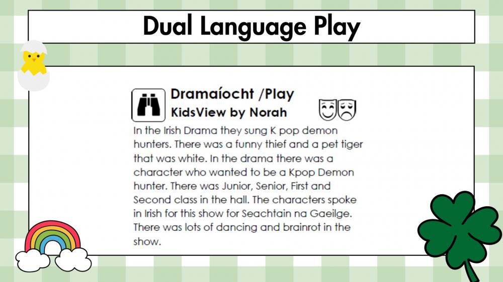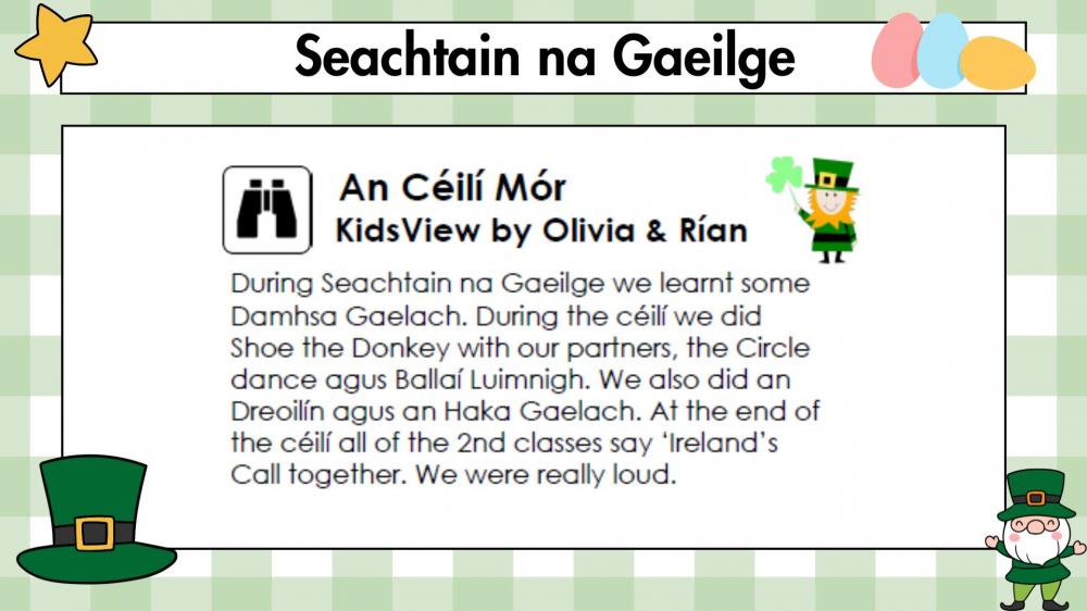 Seachtain na Gaeilge was marked by a fantastic two weeks of celebration of Irish language and culture, filled with music, language and school spirit. The hall came alive with a lively ceilís, where dancers of all ages took to the floor. Throughout the week, beautiful singing and a vibrant ceolchoirm showcased the talents of children and staff and a love for Gaeilge. A highlight were the rousing renditions of Ireland’s Call performed by our pupils, lifting everyone’s spirits. We were also treated to an impressive display of Irish dancing by a member of the Riverdance team! It was a joyful few weeks, full of fun and proudly enjoyed by all. Pictures here